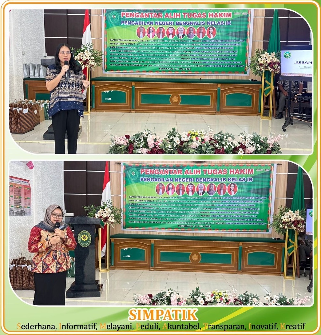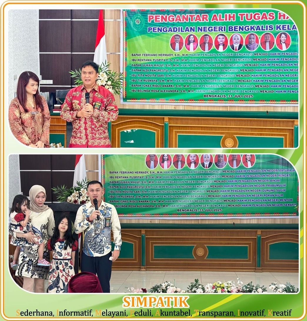 Kamis, 30 Juli 2025 Pukul 13.30 WIB di ruang sidang Kusumah Atmadja Pengadilan Negeri Bengkalis dilaksanakan Pengantar Alih Tugas:
