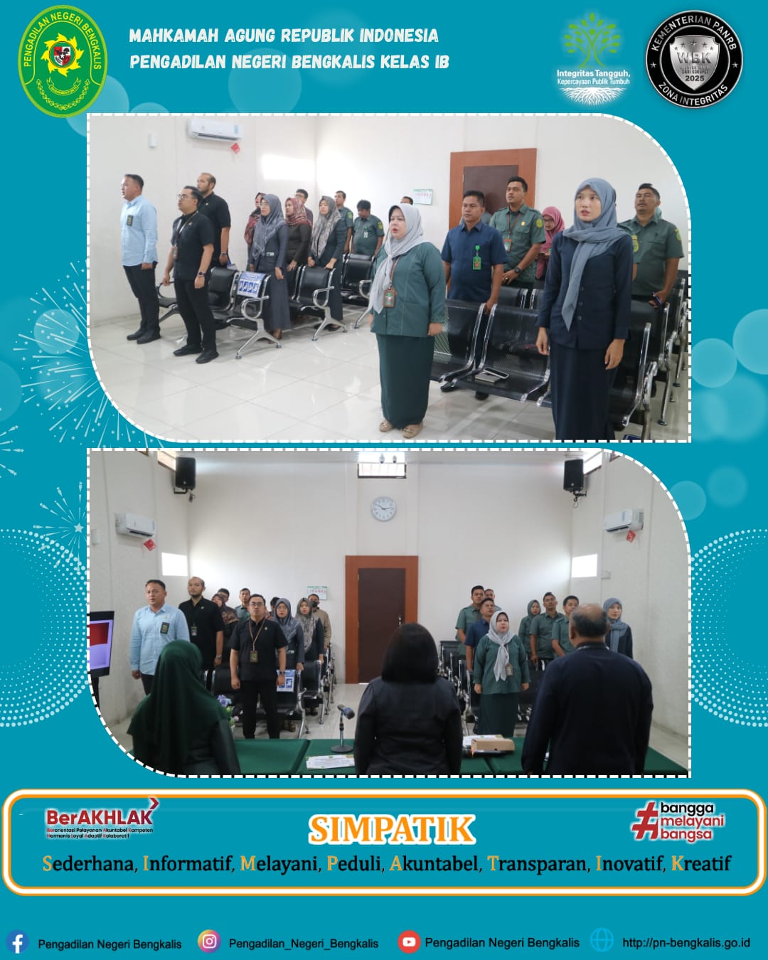Ketua Pengadilan Negeri Bengkalis menyampaikan kepada seluruh pegawai untuk tetap semangat dalam pelaksanaan tugas dan tanggung jawab sesuai tugas pokok dan fungsinya .