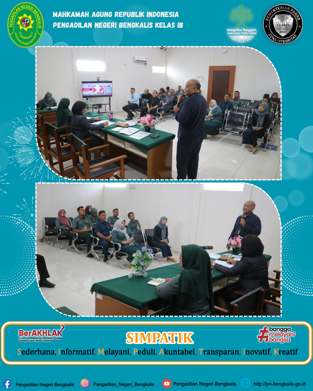 Kegiatan ini juga menjadi momentum bagi PN Bengkalis untuk memperkuat komitmen terhadap Zona Integritas (ZI). Dengan memahami rincian DIPA, seluruh aparatur diharapkan dapat melakukan pengawasan mandiri (self-monitoring) untuk mencegah terjadinya penyimpangan anggaran.